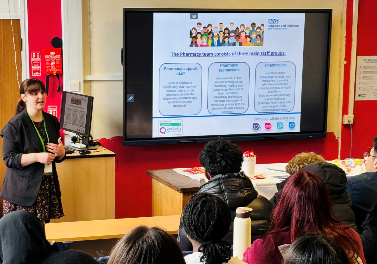 A huge thank you to Linsey from Kingston and Richmond NHS Foundation Trust, who delivered an engaging Work‑Related Talk (WRT) to our Year 1 BTEC Applied Science students this week. Her presentation offered a detailed and inspiring look into careers within the pharmacy sector, highlighting the essential role pharmacy teams play across the NHS.